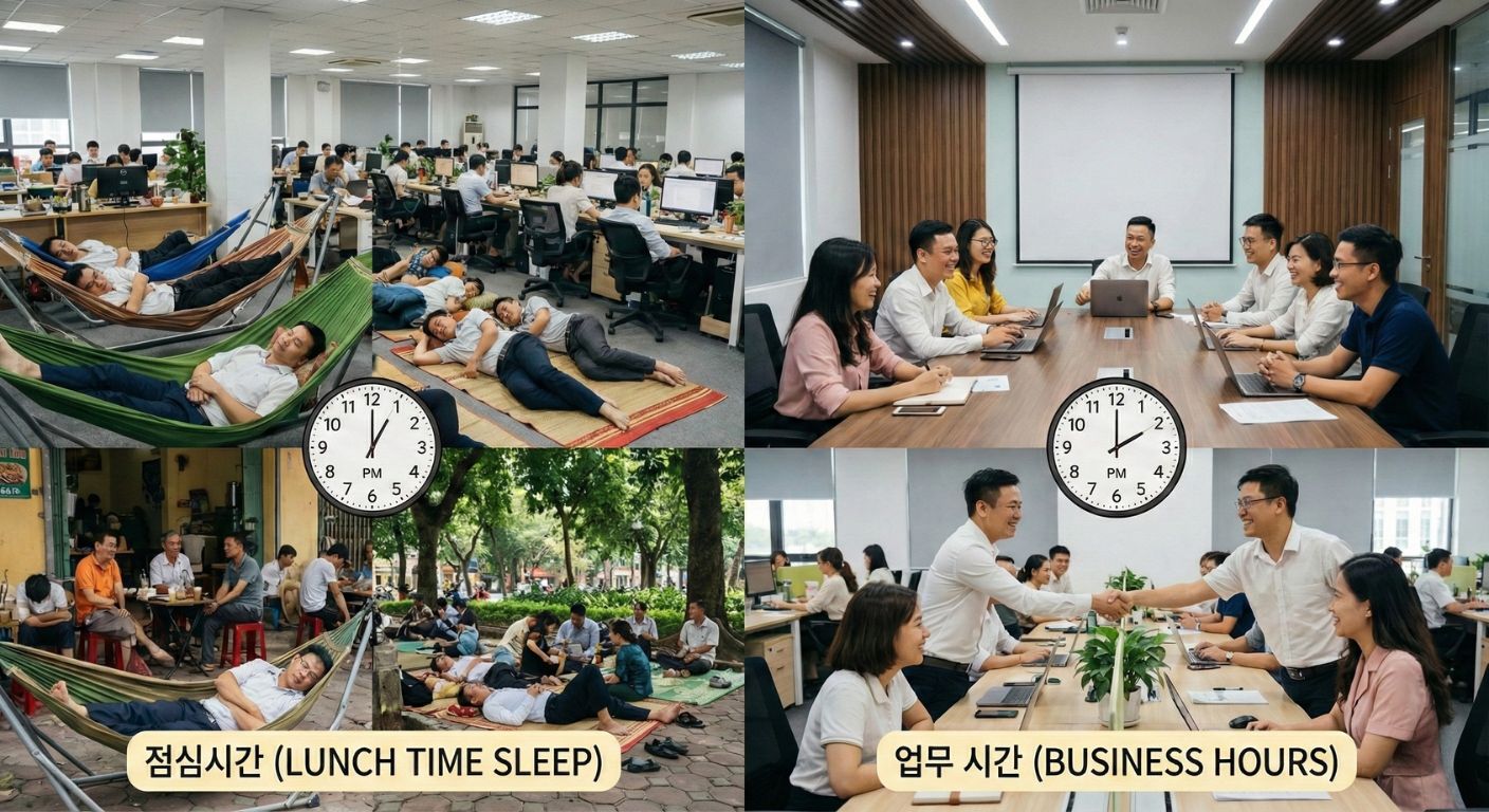 베트남을 여행하거나 비즈니스를 위해 방문하는 사람이라면 누구나 한 번쯤은 궁금했을 겁니다. 왜 베트남 사람들은 점심시간에 다 같이 낮잠을 잘까? 이 독특한 문화는 단순한 휴식을 넘어 베트남 사람들의 삶과 업무 방식에 깊숙이 자리 잡고 있습니다. 베트남의 낮잠 문화와 비즈니스 시간을 이해하는 것은 베트남 사람들과의 효과적인 소통과 협업을 위한 첫걸음입니다.